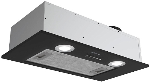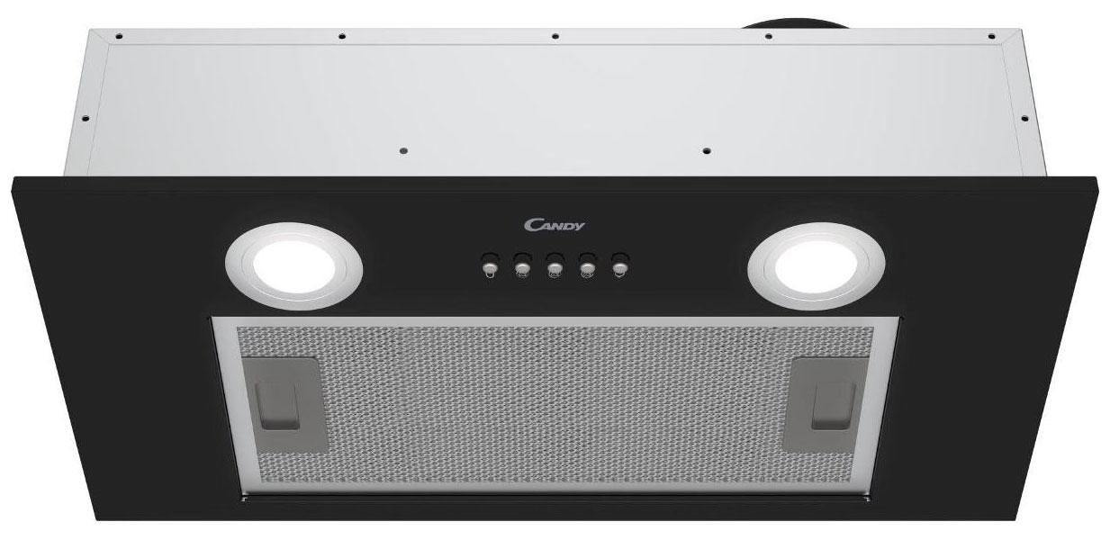 Полностью встраиваемая вытяжка Candy CPY5MBP-07 черного цвета габаритами 13х52х28 см весит 5,5 кг и потребляет до 74 Вт электроэнергии. К сети 220-240 В устройство подключается кабелем длиной 1 м. Предусмотрена установка на штуцер диаметром 120 мм. Модель управляется механическими кнопками, расположенными спереди, обеспечивает производительность до 450 м³/ч и рассчитана на очистку воздуха на площади до 17 м².