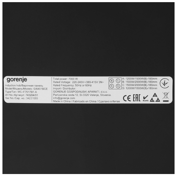 Варочная панель Gorenje GI6401BCE