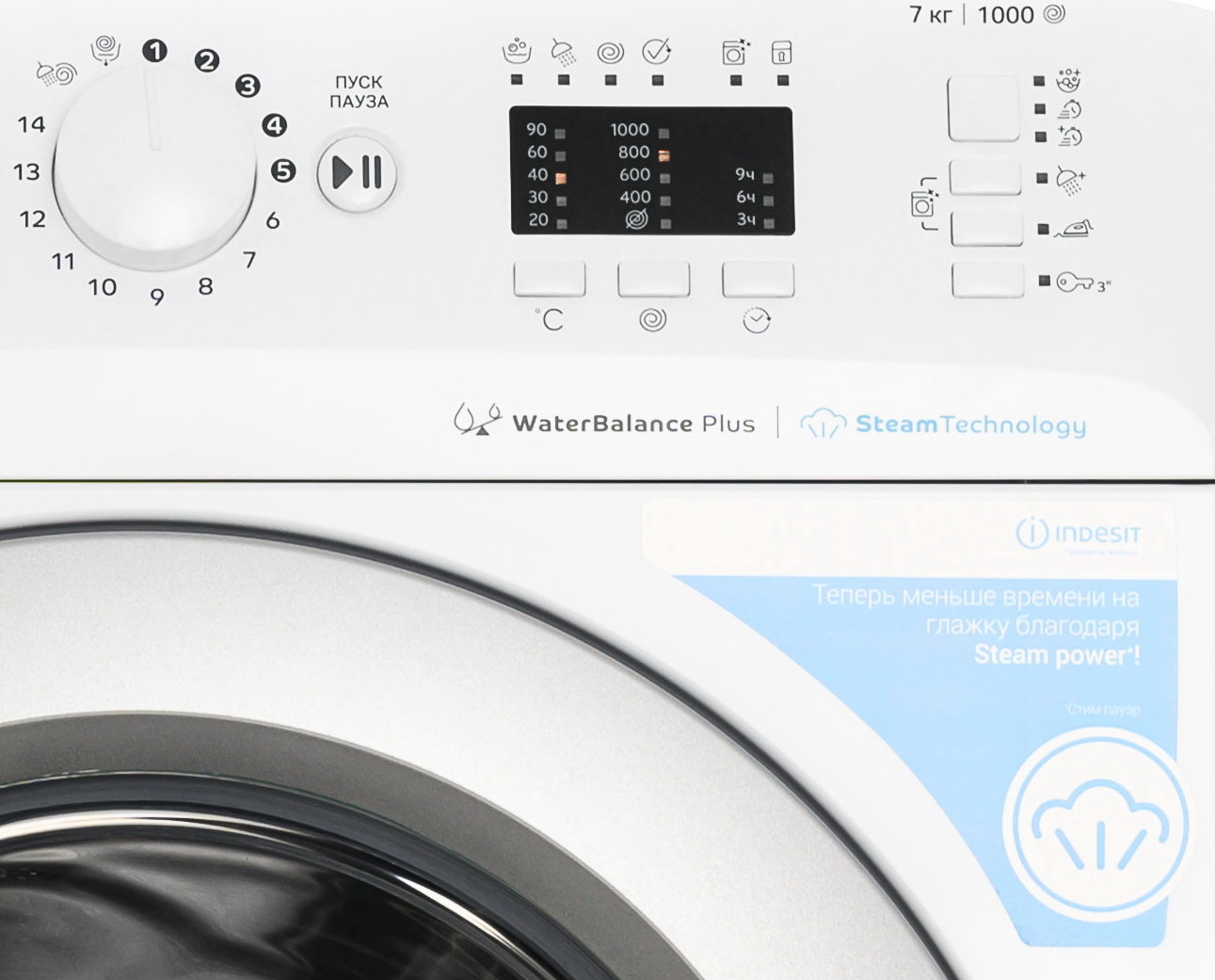Выбор скорости отжима: 400/600/800/1000 об/мин