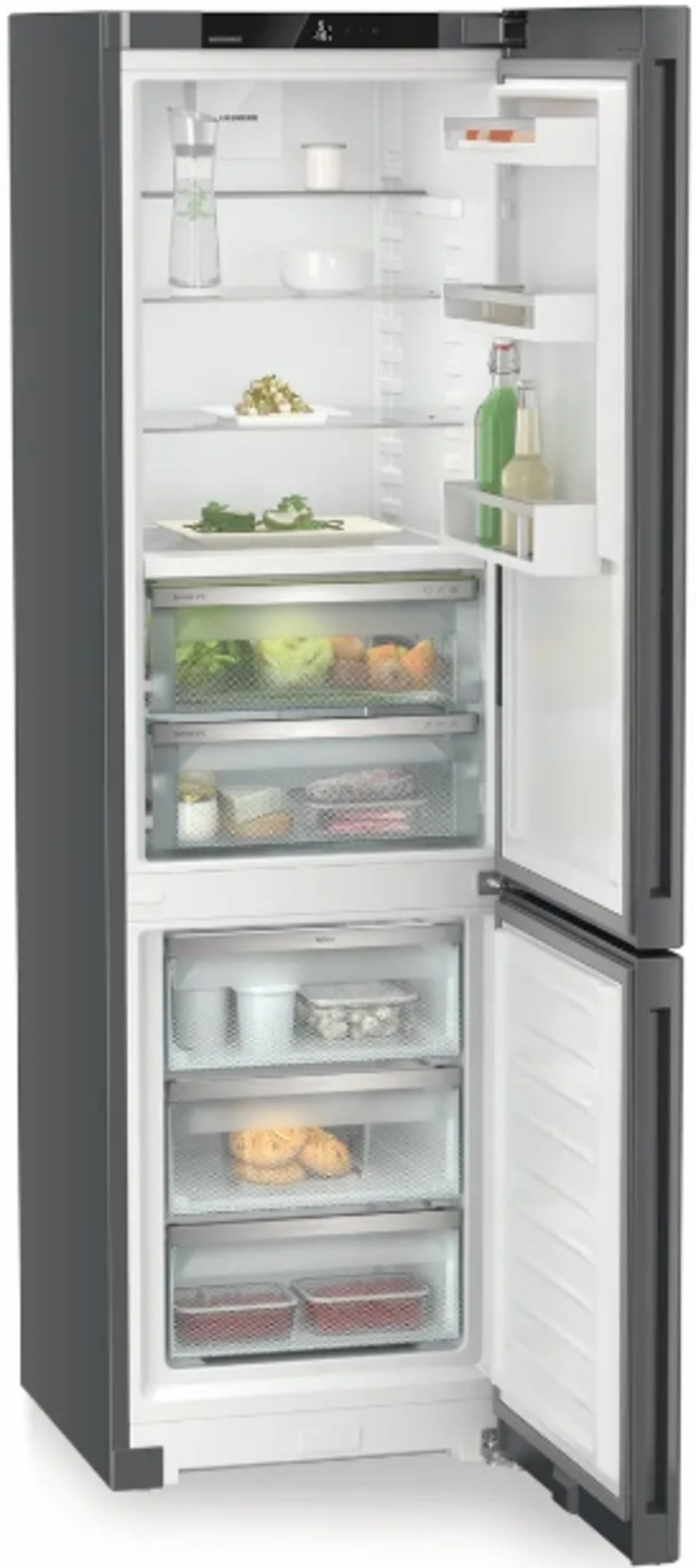 Холодильник Liebherr CBNdgc 5723 — это воплощение передовых технологий и утонченного дизайна, который гармонично впишется в любой интерьер. Высококачественная сталь корпуса и дверей придает устройству современный и стильный вид, а встроенная ручка двери обеспечивает удобство в использовании. Устройство, высотой 201,5 см, шириной 59,7 см и глубиной 67,5 см, идеально подходит для просторных кухонь, предоставляя достаточно места для хранения продуктов. Электронное управление с сенсорными элементами, расположенными за дверью, позволяет легко настраивать режимы работы, а светодиодное освещение обеспечивает отличную видимость содержимого.